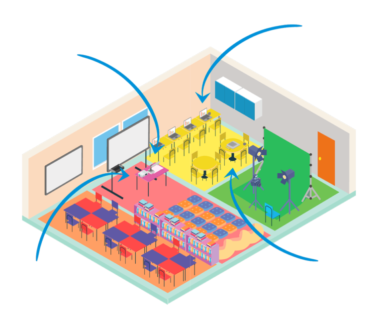 Es la zona flexible para el trabajo en grupo, el desarrollo de proyectos y actividades prácticas. Este espacio es idóneo para explorar, para investigar, para animar a los alumnos a descubrir distintas cosas por su cuenta, a ser participantes activos en vez de oyentes pasivos y desarrollar habilidades de resolución de problemas.