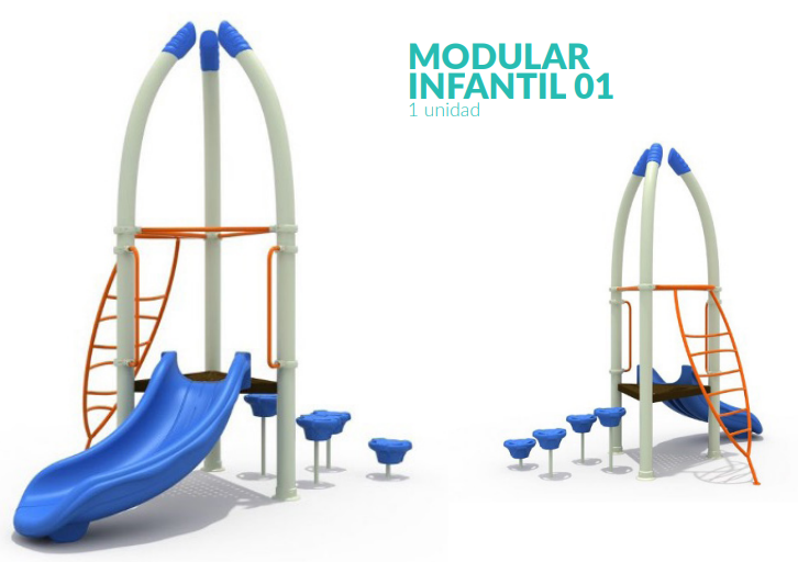 - Incluye: 2 resbalines simples, 1 juego gato, 1 tarima techada y 1 escalera de acceso.