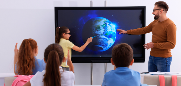 Con las pantallas interactivas, cualquier sala se convierte en un entorno de aprendizaje dinámico, donde los estudiantes participan activamente: escriben, explican contenidos, resuelven problemas y colaboran en equipo con solo tocar la pantalla.