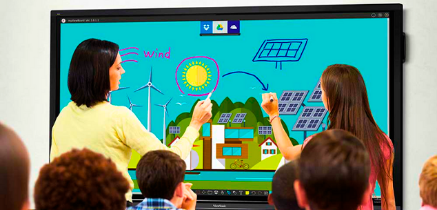 El profesor puede manejar recursos digitales de manera intuitiva, integrando imágenes, videos, aplicaciones y visualizaciones interactivas.